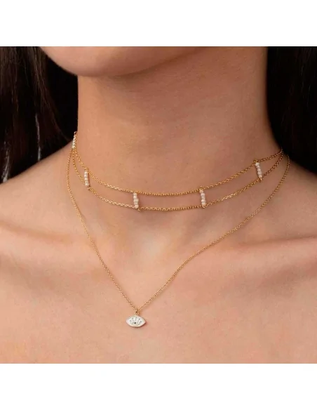 Collar Choker Acero 33+5mm Perlas 2.5mm