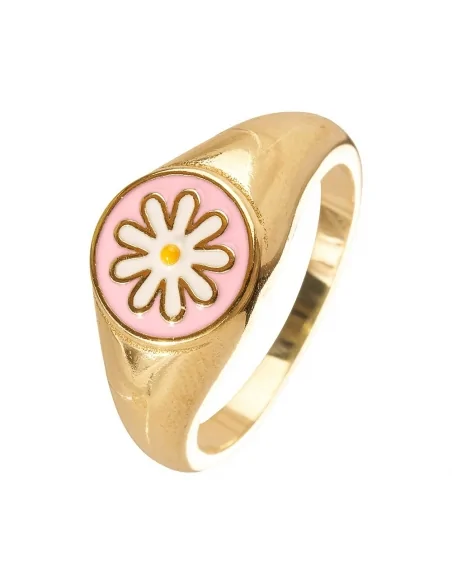 ANILLO SELLO MARGARITA ROSA ESMALTE 10 MM