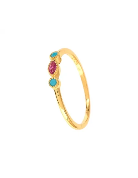 Anillo Plata Circonita Baguette 4X2Mm Circonitas Turquesa 2Mm DO RU