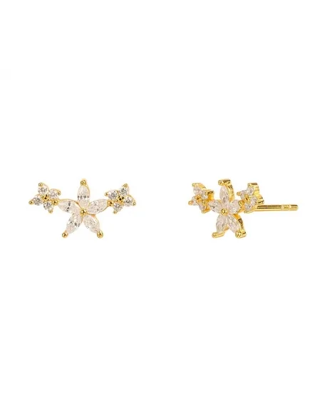 Pendiente Plata 3 Flores Circonitas Blancas 1x1mm y 3x1.5mm
