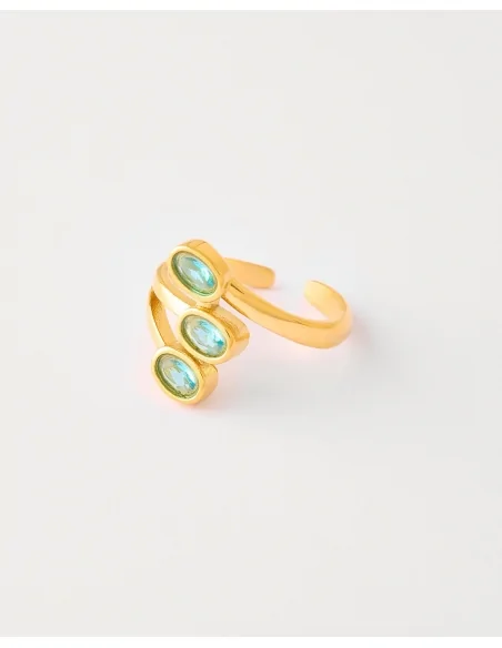 ANILLO ABIERTO 3 CIRCONITAS ACERO DO AQ