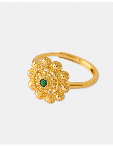 - RML0139DOZV Plata con baño de oro, Circonita esmeralda, Anillo ajustable abierto En Stock Para ver el precio