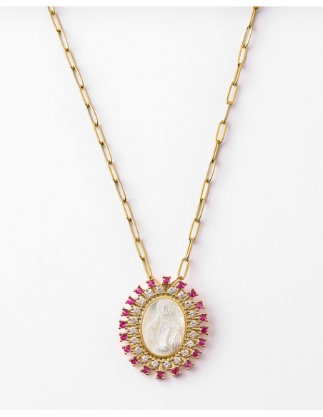 COLLAR MEDALLA VIRGEN MARIA NACAR 36X31MM - 40 CIRCONITAS 2MM - 42+5CM LARGO