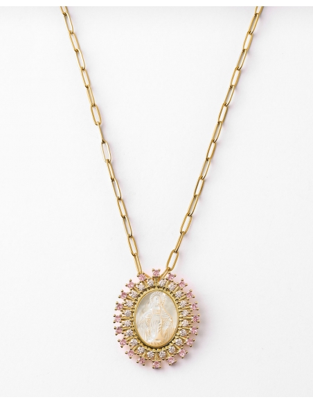 COLLAR MEDALLA VIRGEN MARIA NACAR 36X31MM - 40 CIRCONITAS 2MM - 42+5CM LARGO