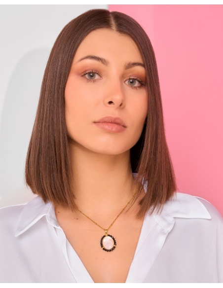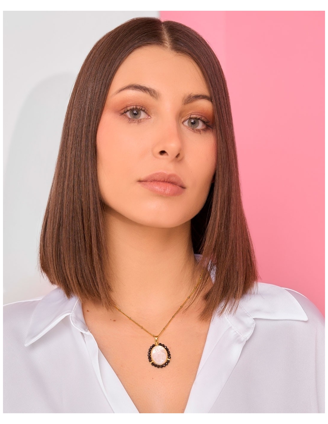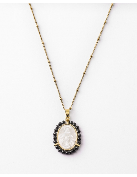 COLLAR MEDALLA NACAR VIRGEN Milagrosa 31x23MM - PIEDRAS ONIX 3MM - 42+5CM LARGO