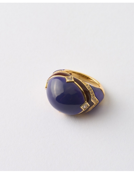 ANILLO CUPULA ESMALTE AZUL Y CHOCOLATE CIRCONITAS