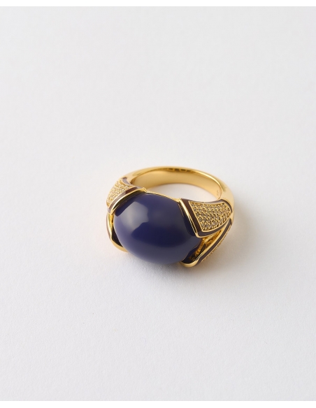 ANILLO CABUJON OVALADO ESMALTE AZUL Y CIRCONITAS