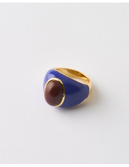 ANILLO CABUJON OVALADO ESMALTE LISO AZUL Y CHOCOLATE