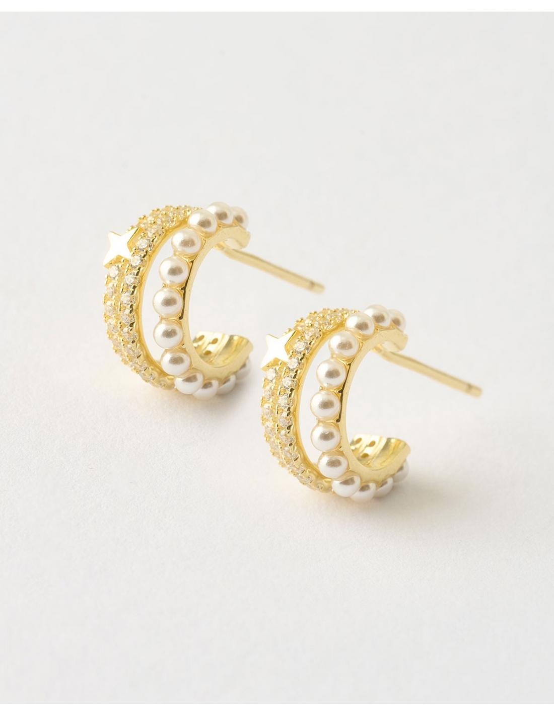 PENDIENTES TRIPLE ARO 13MM PERLAS Y CIRCONITAS