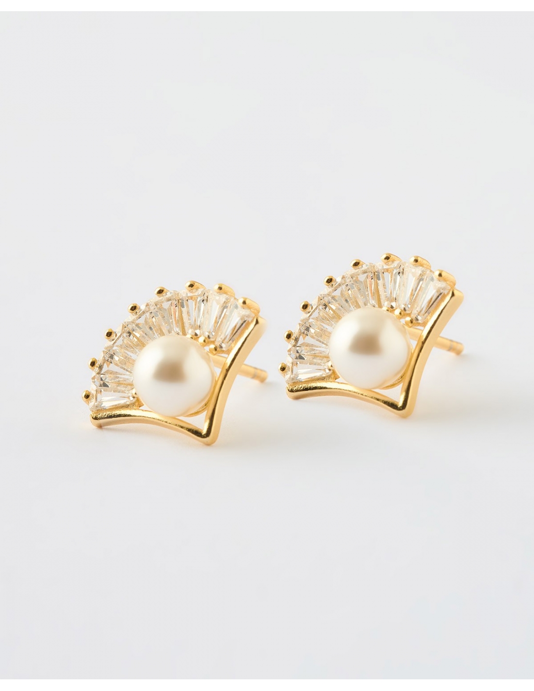PENDIENTES PRESION ABANICOS CIRCONITAS 13X10MM - PERLA 5MM
