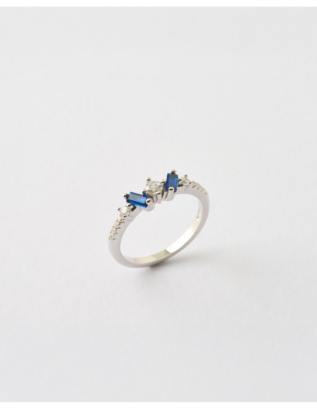 ANILLO CIRCONITAS REDONDAS BLANCSA Y BAGUETTE ZAFIRO