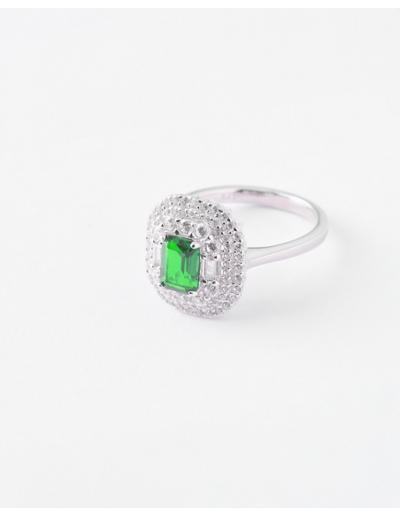 Anillo Circonita Esmeralda Central 7x5mm Triple Halo Circonitas Blancas Plata