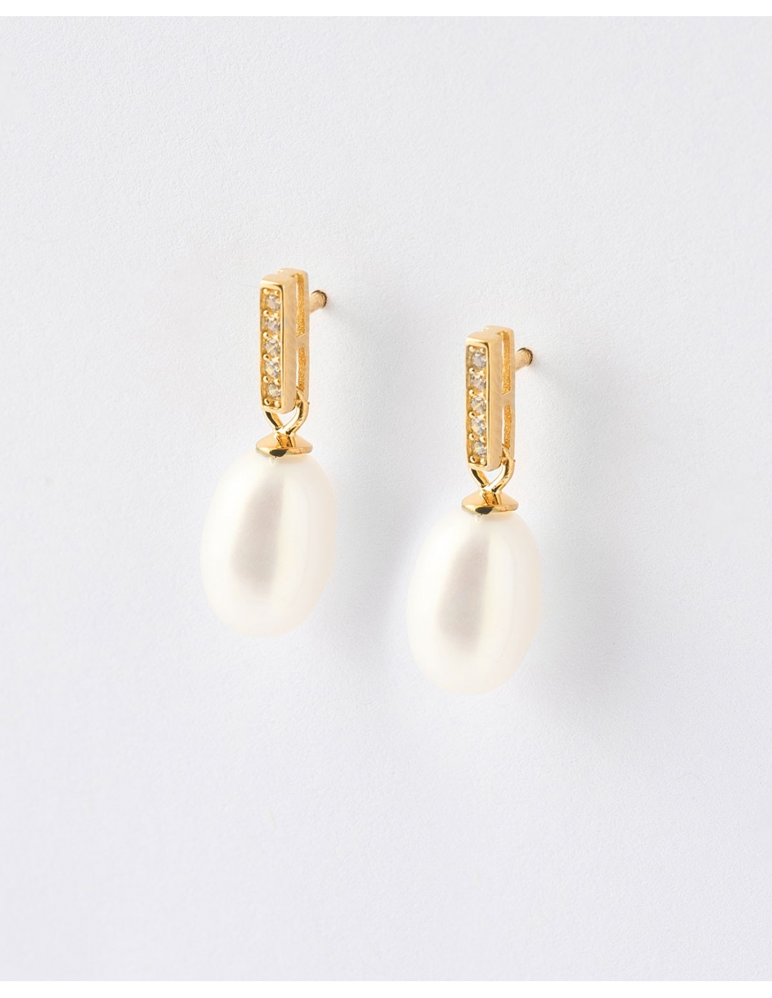 PENDIENTES BARRA CIRCONITAS Y PERLA 11X7MM