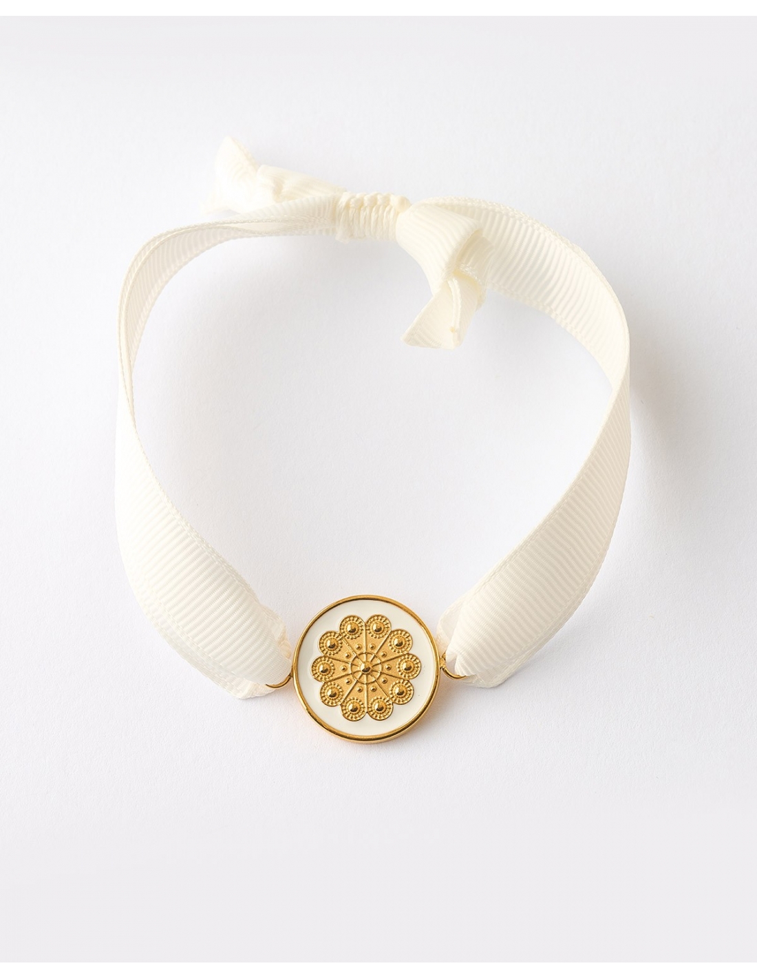 PULSERA AJUSTABLE BOTON CHARRO CINTA BLANCA ESMALTE BLANCO