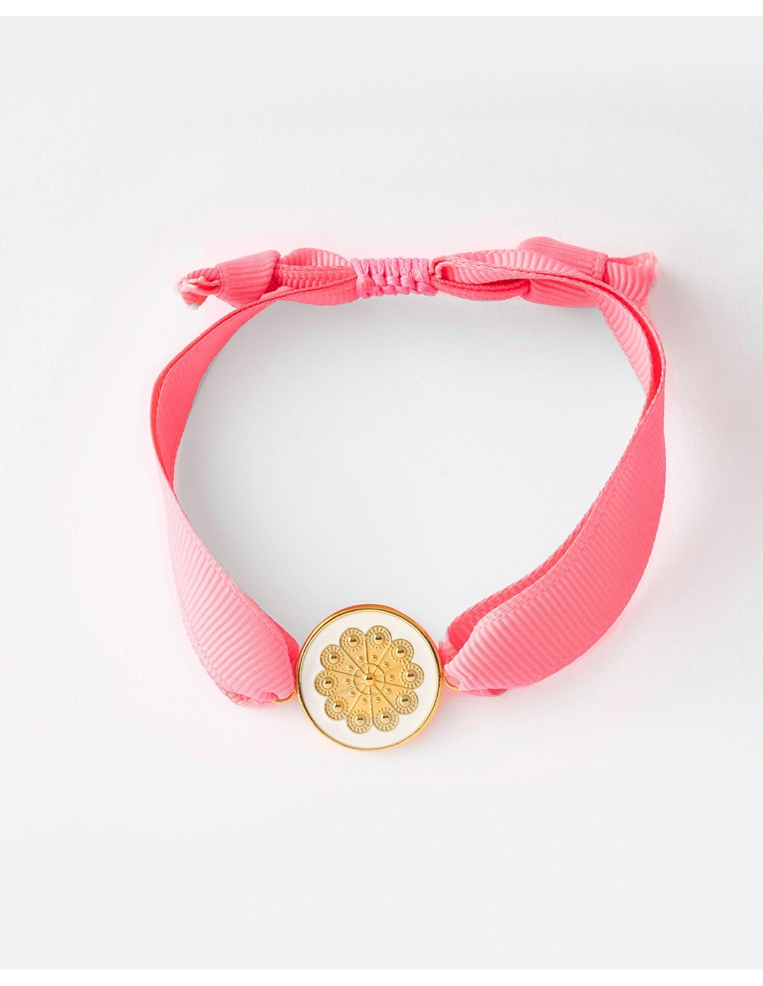 PULSERA AJUSTABLE BOTON CHARRO CINTA ROSA ESMALTE BLANCO