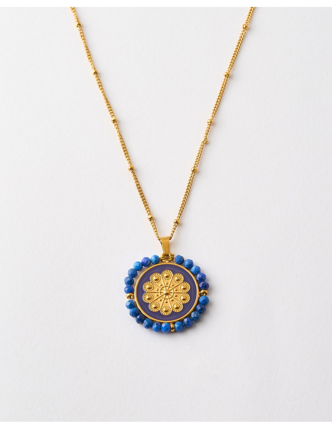 COLLAR MEDALLA BOTON CHARRO 20MM PIEDRAS LAPISLAZULI 3MM
