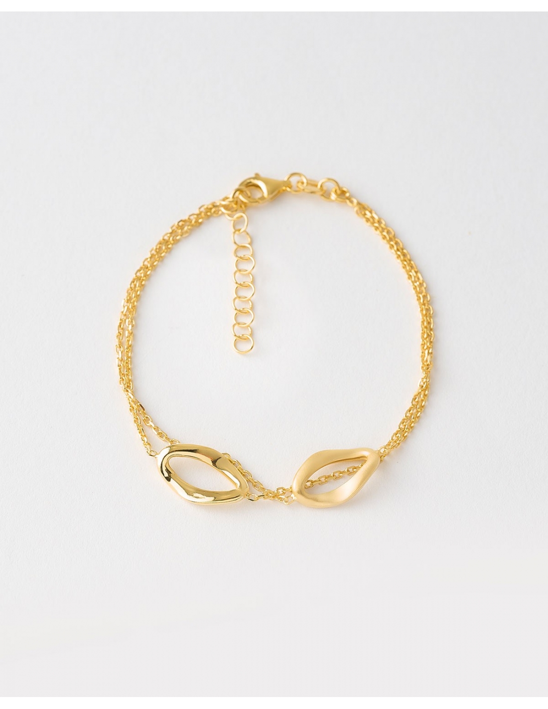 PULSERA DOBLE CADENA OVALOS 15MM MATE Y BRILLO - 17+3CM LARGO