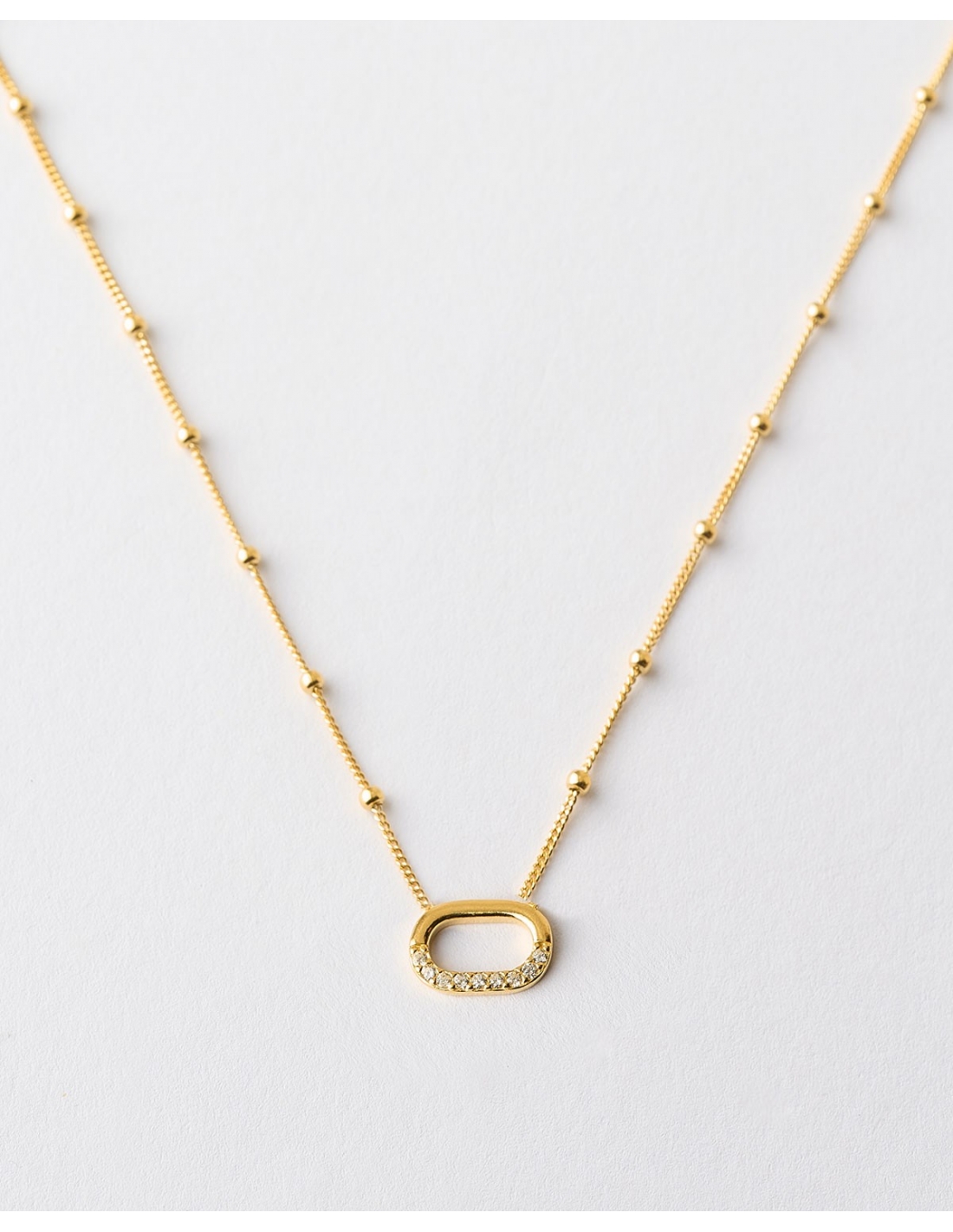 COLLAR CADENA BOLAS OVALO CIRCONITAS - 39+5CM LARGO