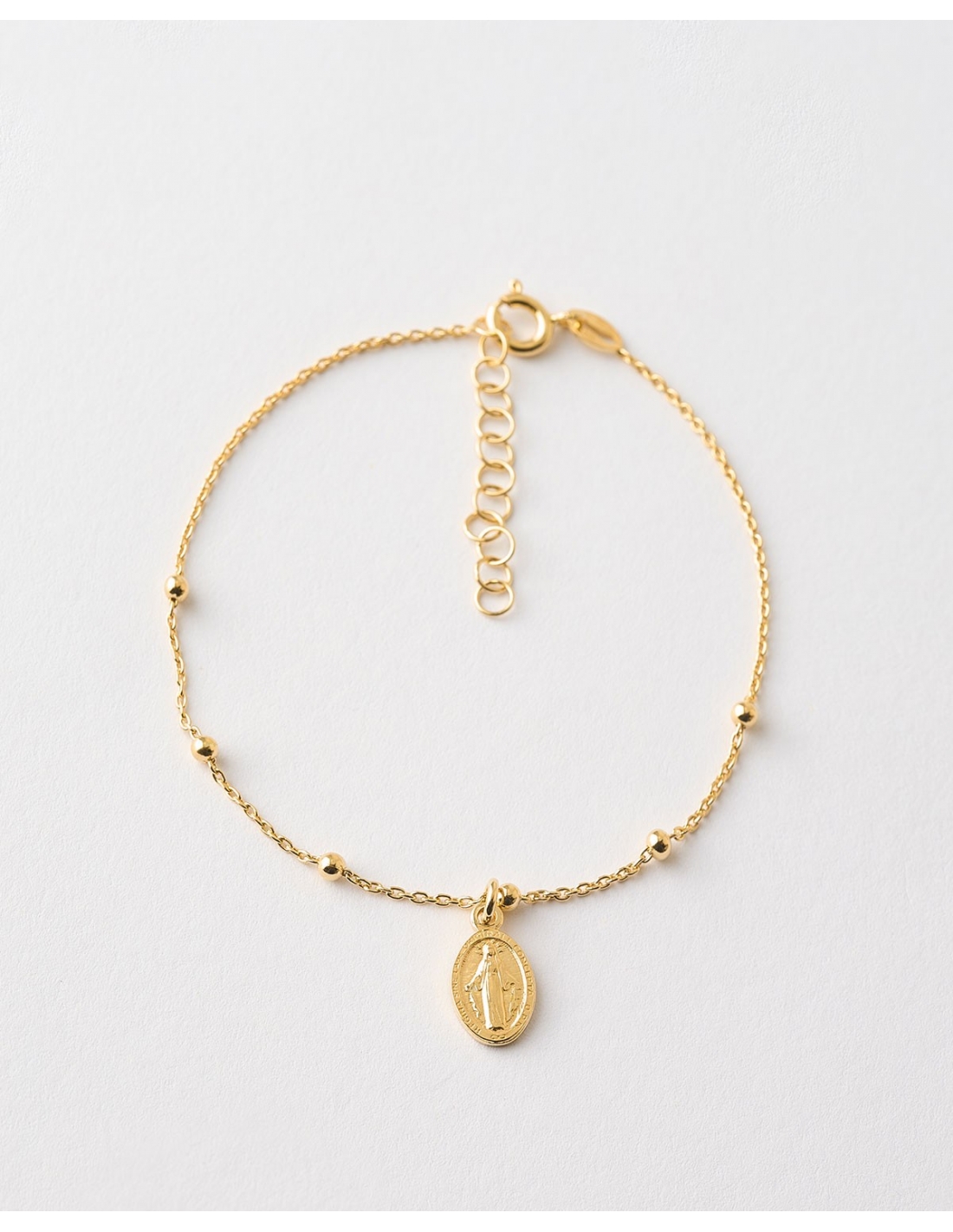 PULSERA CADENA BOLAS MEDALLA VIRGEN DE LA MILAGROSA 10X7MM - 18+3CM LARGO