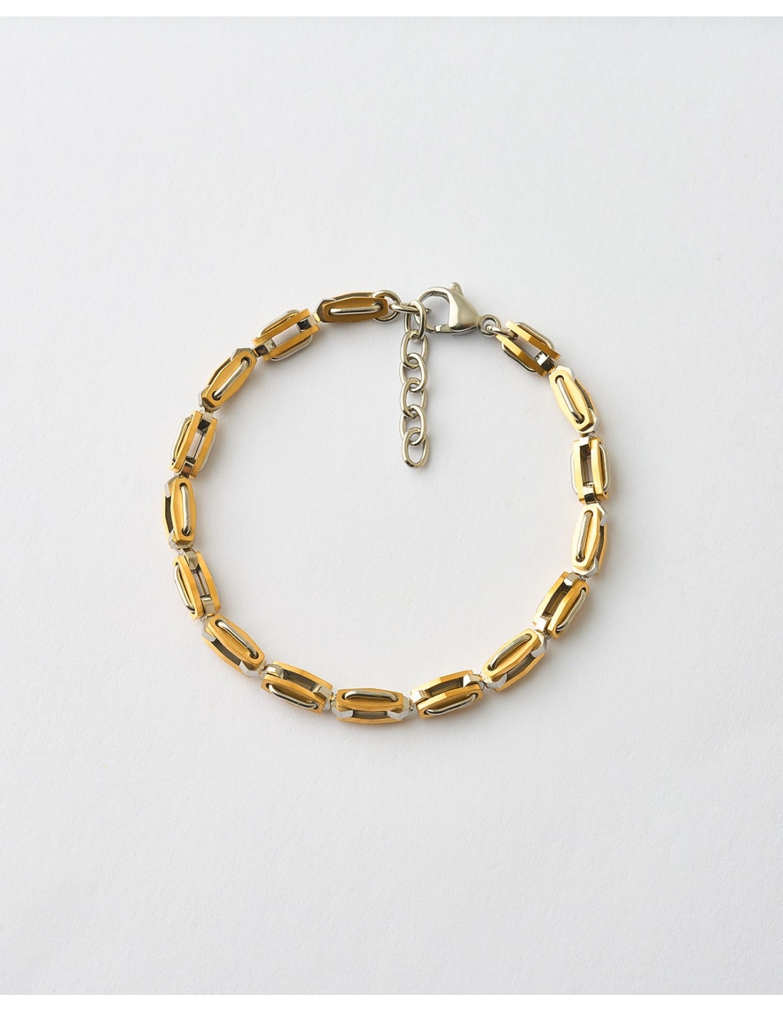 PULSERA CADENA BICOLOR ESLABON GEOMETRICO - 18+3CM LARGO