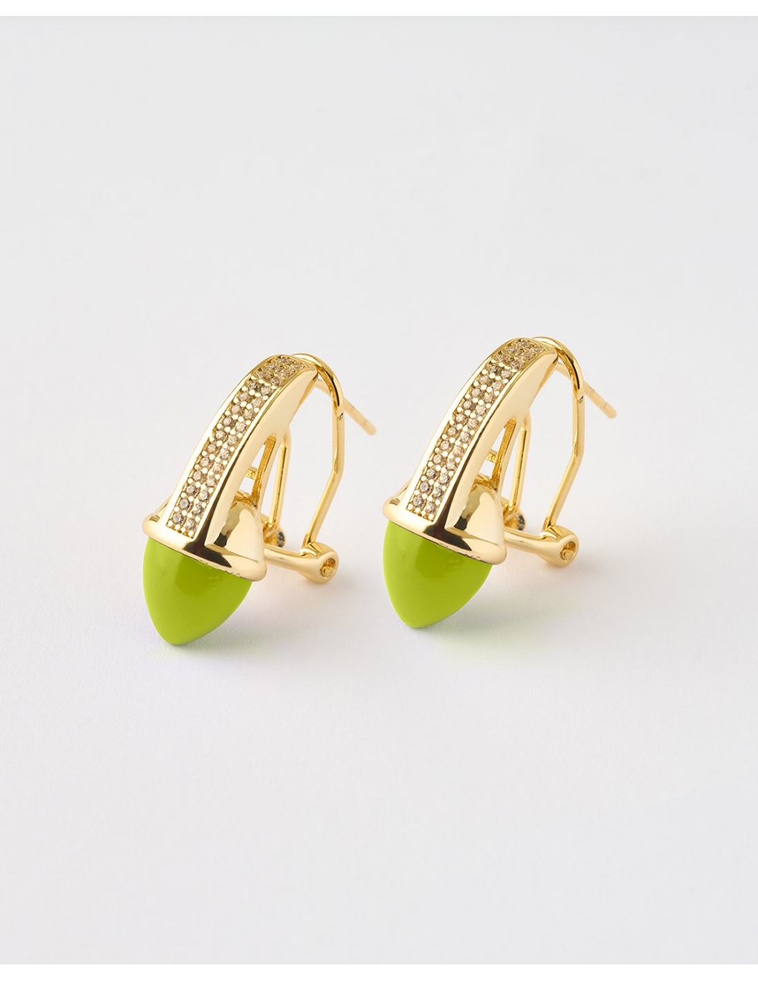 PENDIENTES BULLET CIRCONITAS Y ESMALTE VERDE