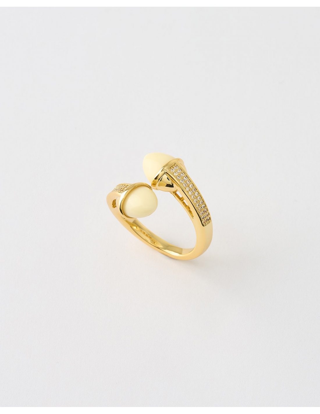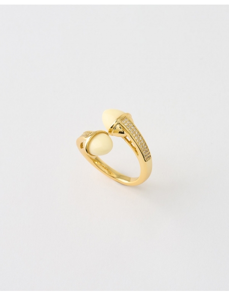 ANILLO BULLET CIRCONITAS Y ESMALTE BLANCO AJUSTABLE