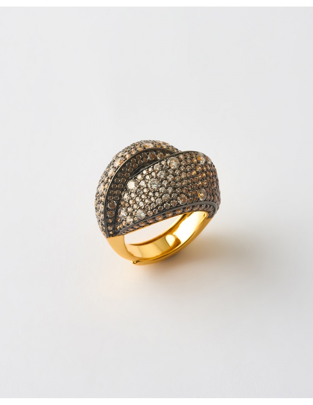 ANILLO DOBLE BANDA PAVE CIRCONITAS IRREGULARES BICOLOR