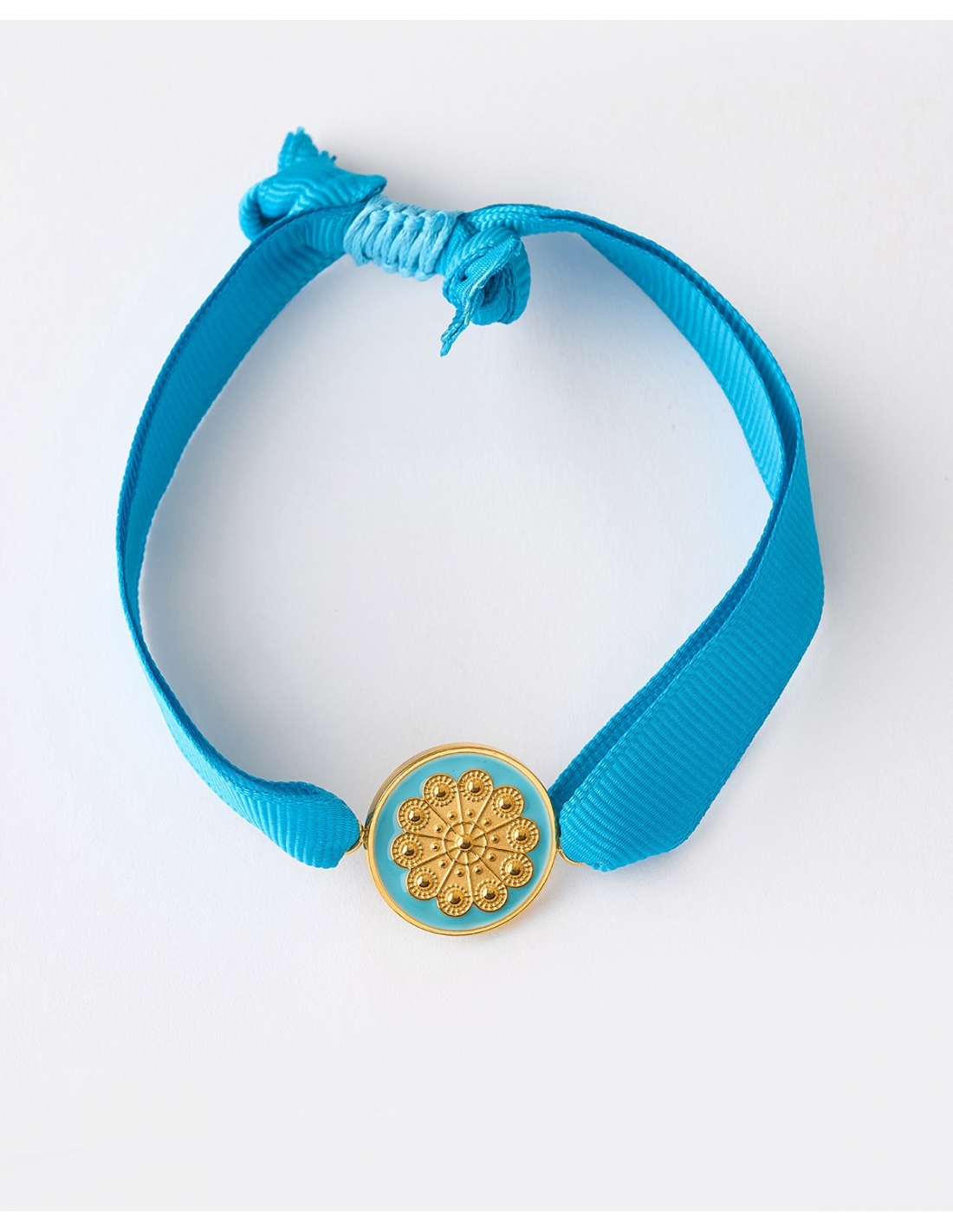 PULSERA AJUSTABLE BOTON CHARRO CINTA TURQUESA ESMALTE TURQUESA