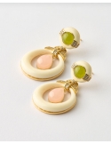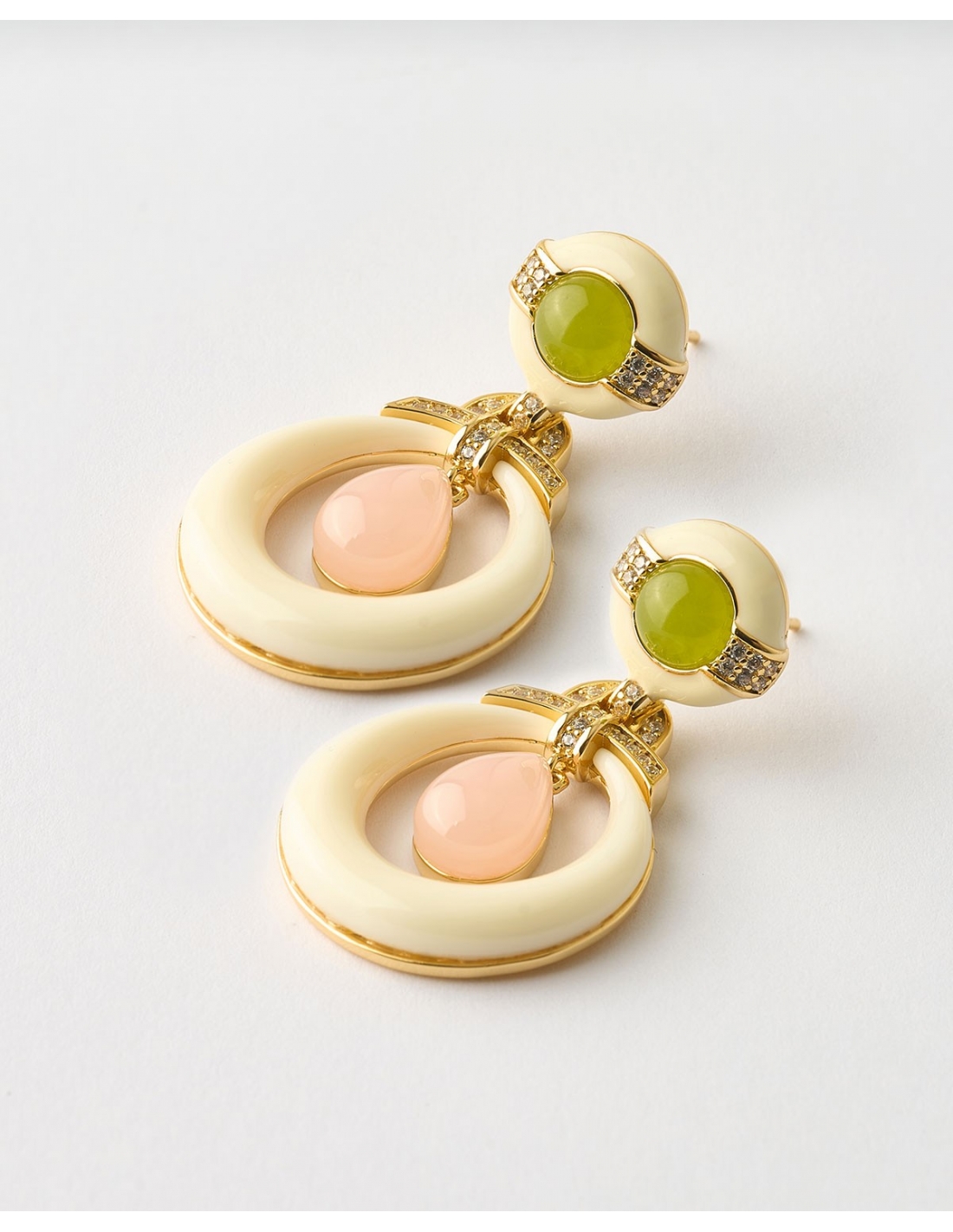 PENDIENTES CABOCHON DROP ESMALTE BICOLOR ROSA Y VERDE CIRCONITAS