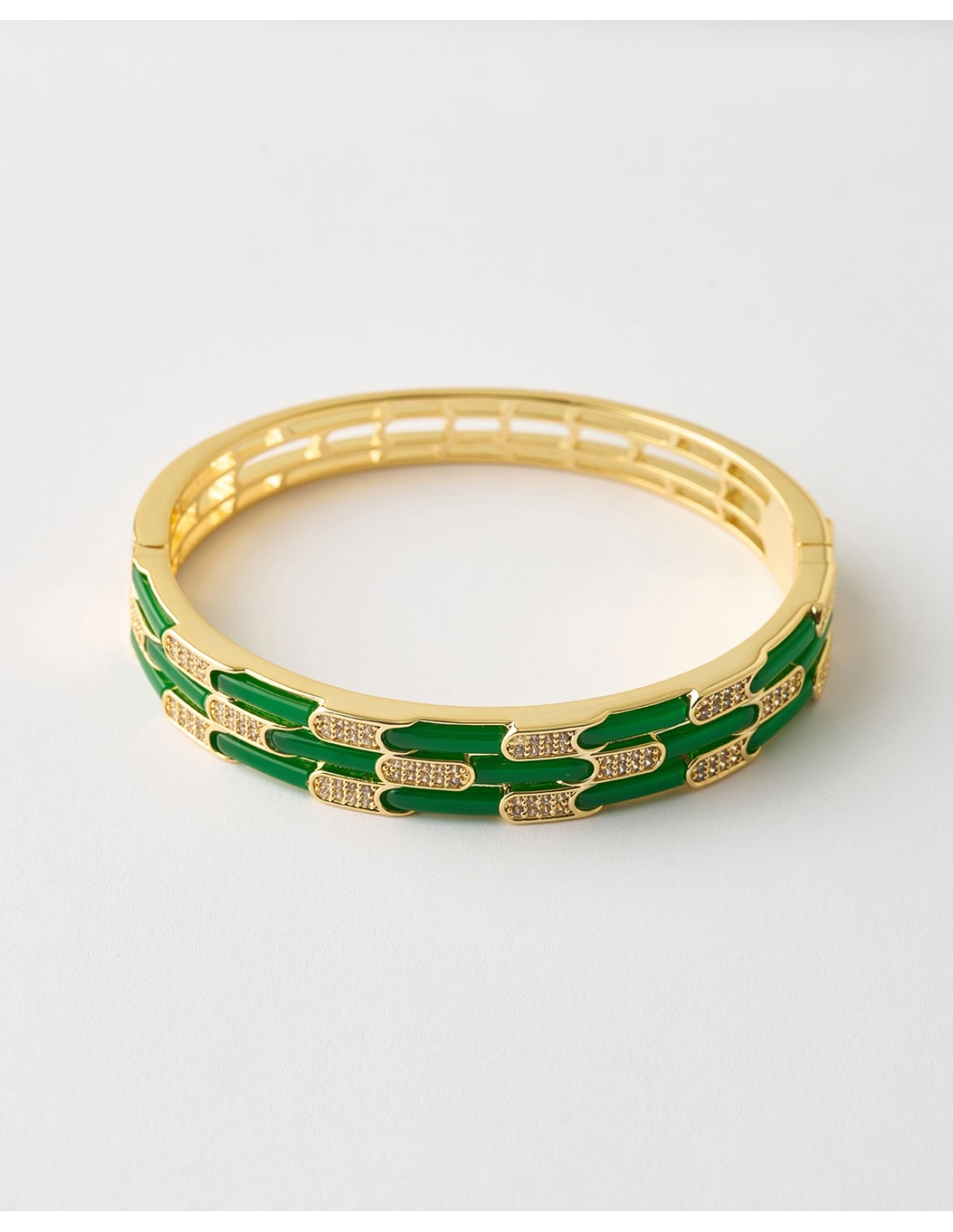 PULSERA MOSAICO ESLABONES ESMALTE VERDE Y CIROCNITAS